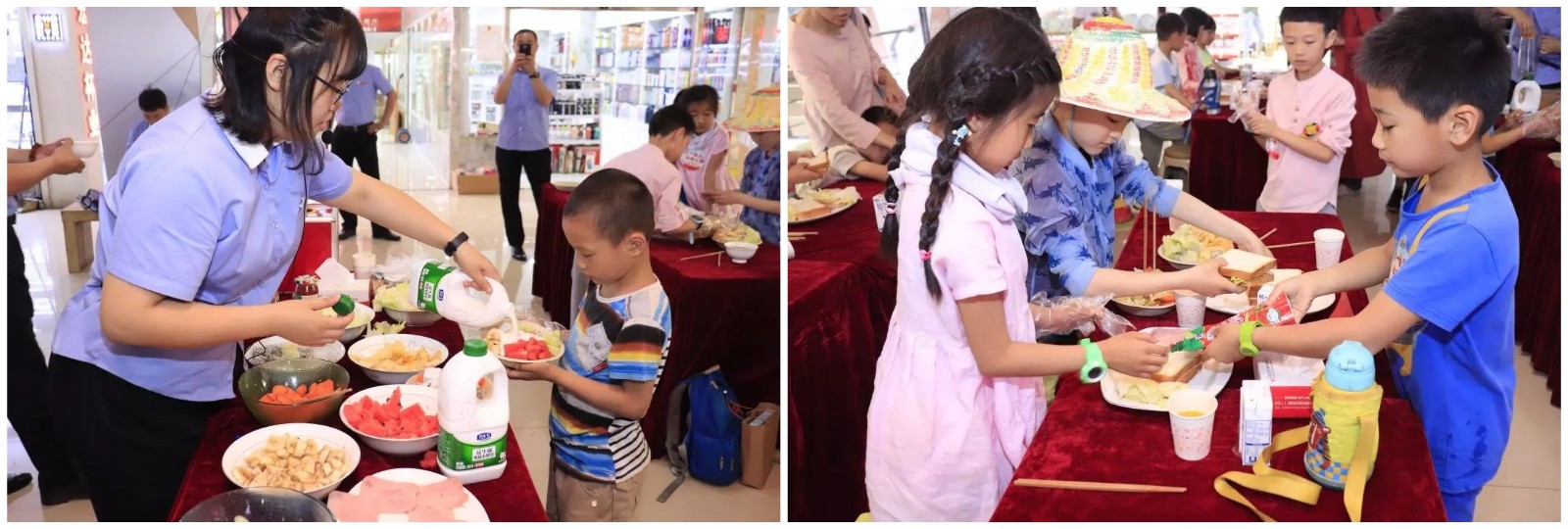 爱心捐赠仪式竣事后,石家庄心田学园的小朋侪们来到了永利304官网唯一文化礼物城和永利304官网唯一百货日化城开启了六一快乐体验之旅。小朋侪们在这体验了手工贴画,也加入了厨房美食的制作历程,不但磨炼了小朋侪们的下手能力,还磨炼了相互协作的能力。