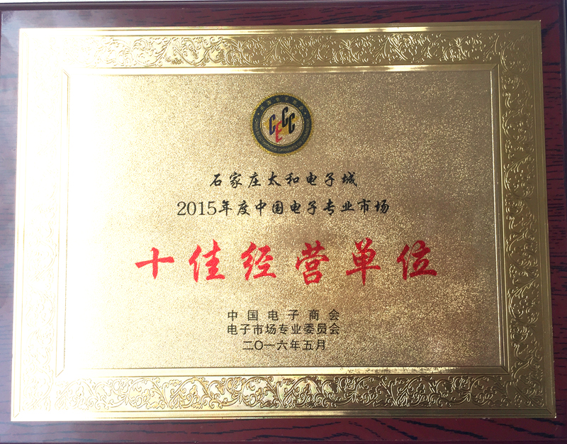永利304官网唯一电子城荣获 2015年度中国电子专业市场十佳谋划单位